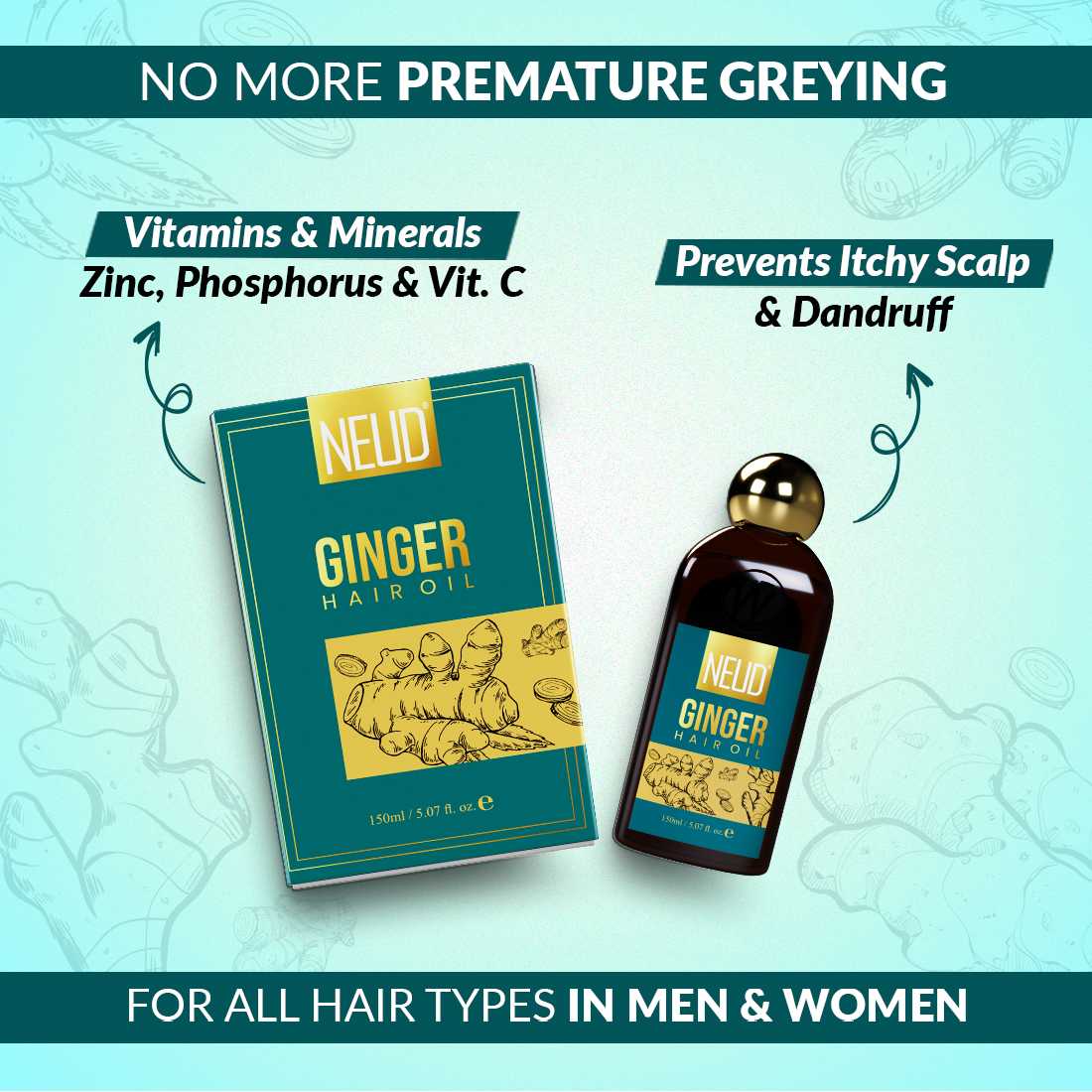 - NEUD Ginger Hair Oil and Shampoo are rich in vitamins & minerals including phosphorous, copper, magnesium and zinc