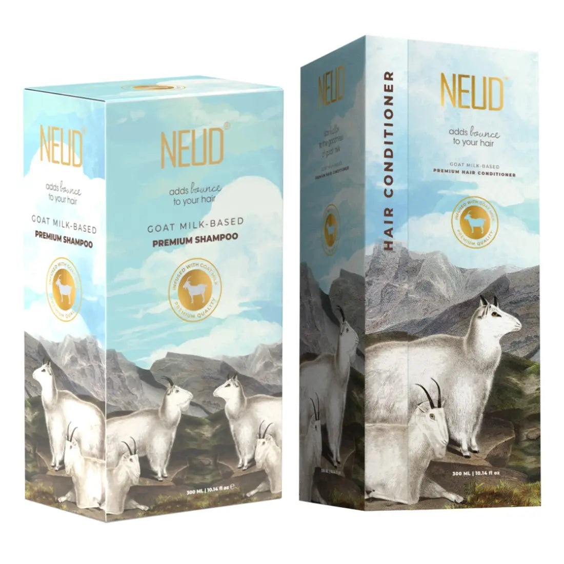Pamper yourself with this irresistible hair care combo containing one pack each of NEUD Premium Goat Milk Shampoo (300ml) and NEUD Premium Goat Milk Hair Conditioner (300ml).