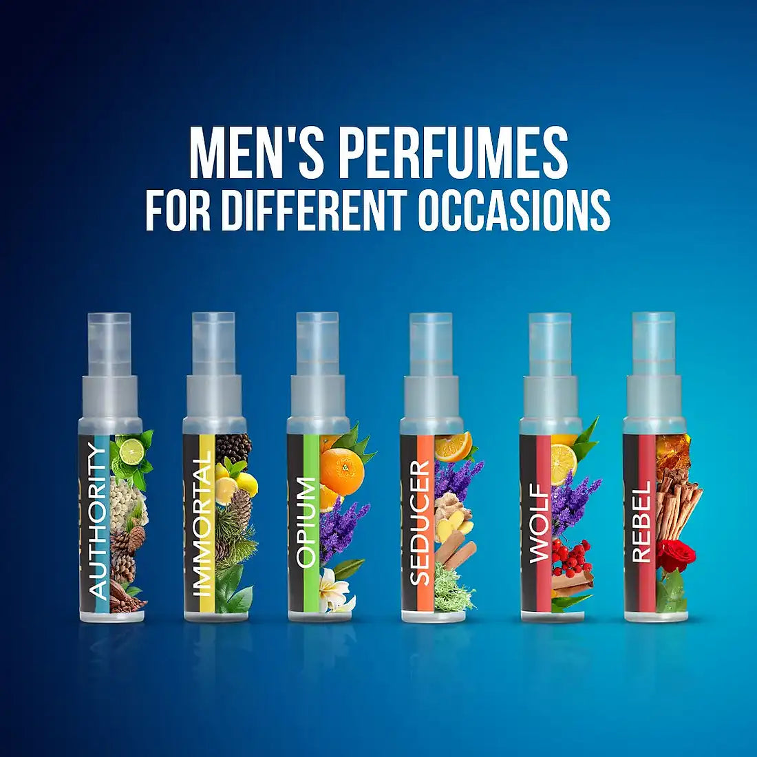 The six masculine perfume vials in this set include: