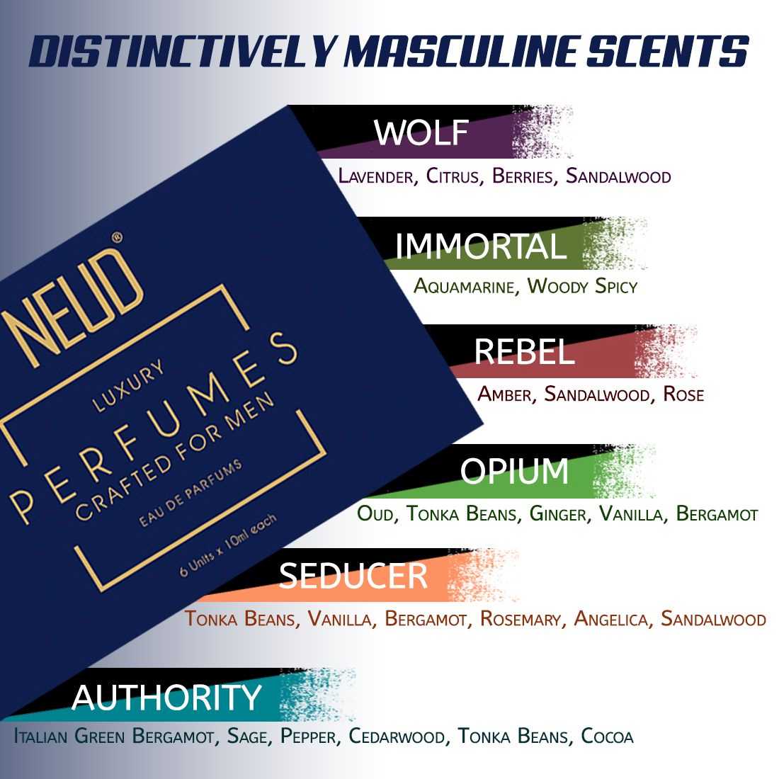 NEUD Luxury Perfumes for Men Long Lasting EDP - 6 Vials x 10ml Each