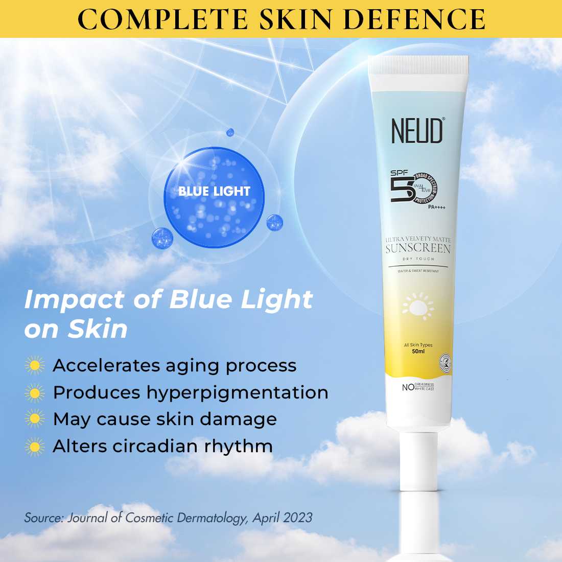 NEUD Ultra Velvety Matte Priming Sunscreen Dry Touch with SPF 50 PA++++ and Vitamin E, Sweat-Resistant, No White Cast - 50g