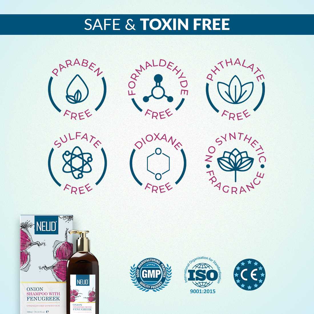 NEUD Premium Onion Hair Shampoo with Fenugreek for Men and Women - 300 ml
