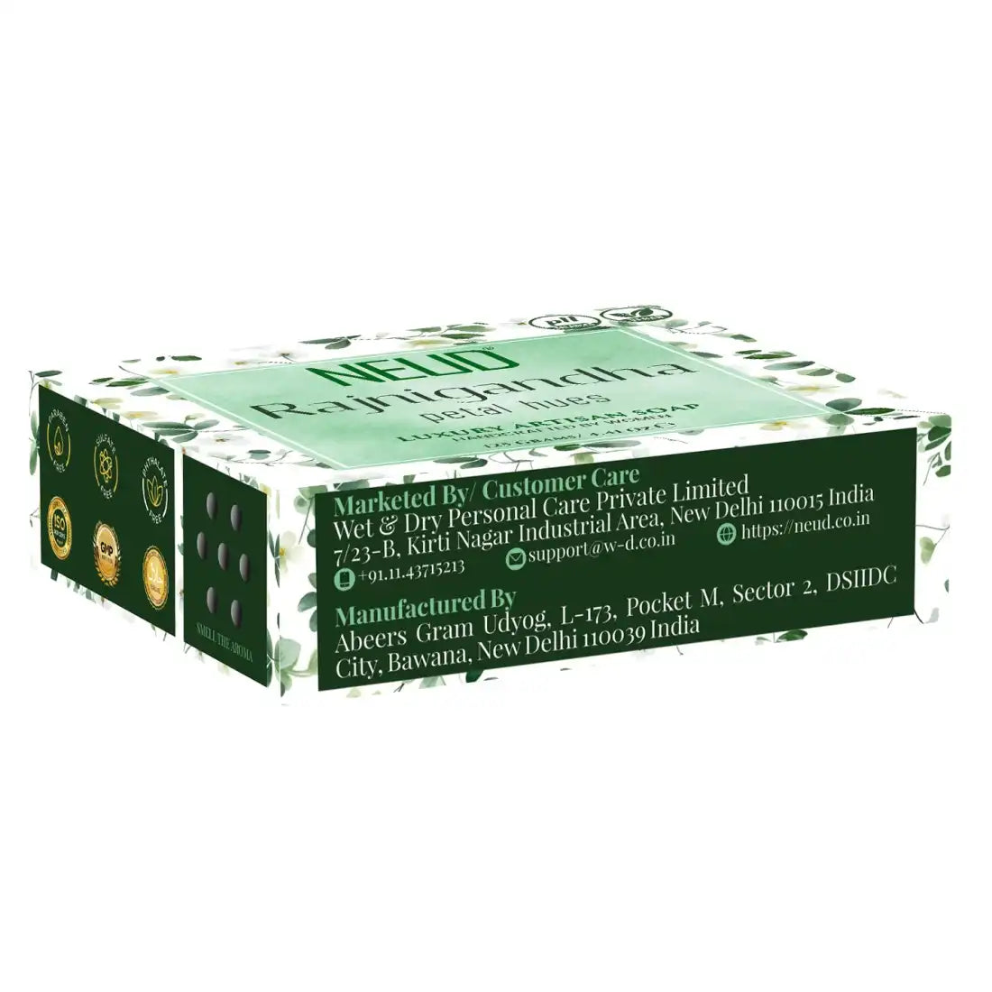Certified by ISO and GMP standards, and 100% Halal, this artisan soap provides premium quality and ethical manufacturing. Its unique formula helps repair and rejuvenate damaged skin, soothes inflammation, and leaves your skin with a radiant glow. Elevate your skincare routine with the calming and relaxing benefits of NEUD Rajnigandha Artisan Soap.