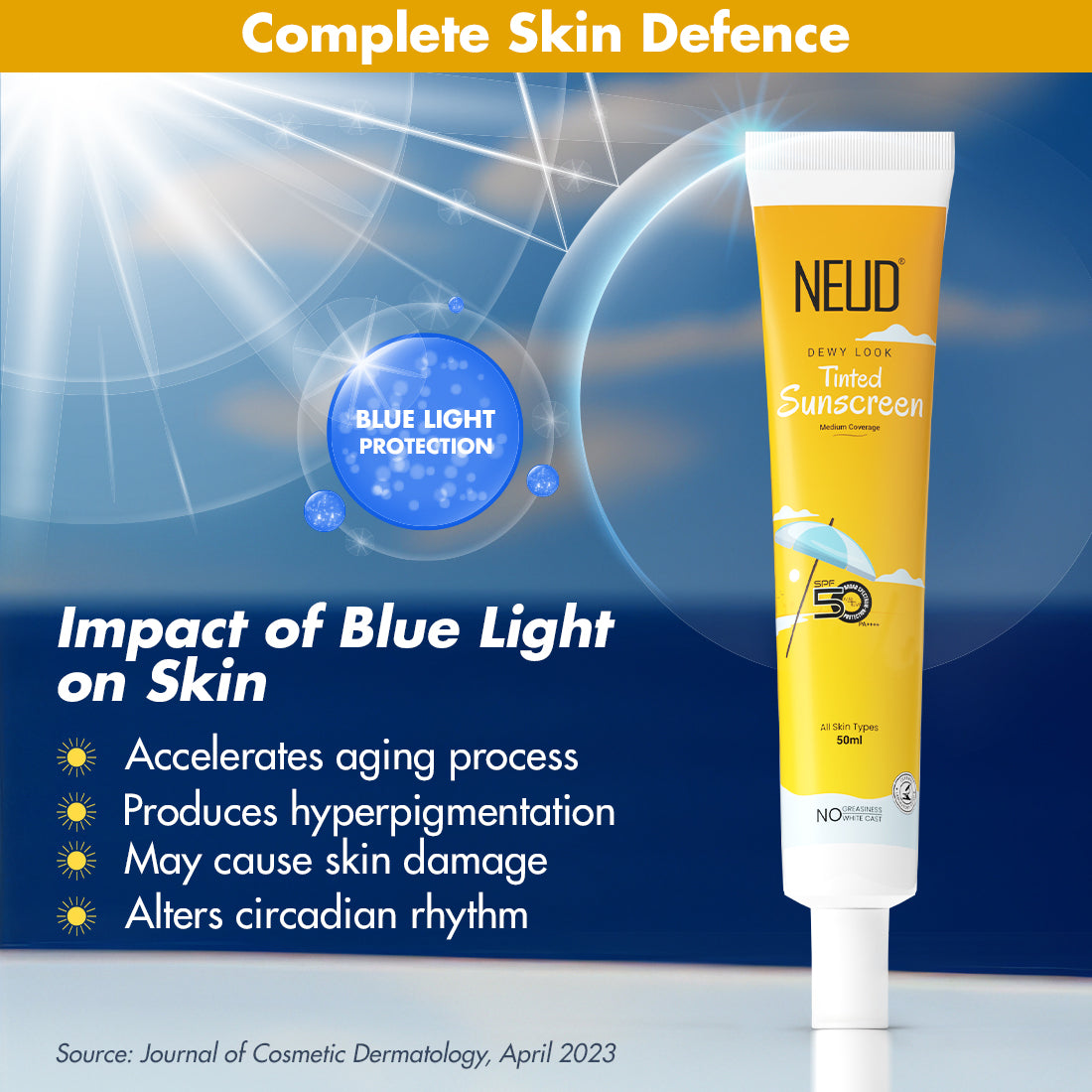 NEUD Dewy Look Tinted Sunscreen 50ml with SPF 50++++ is ideal for dull and mature skin. It offers medium coverage with superior, broad spectrum sun protection against aging UVA rays and sunburning UVB rays. Enriched with Hyaluronic Acid, niacinamide, Provitamin B5, Vitamin E, avocado oil, argan oil and olive oil, this tinted sunscreen from NEUD has been expertly formulated to keep the skin protected, nourished and hydrated.